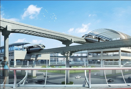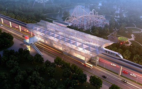 平行換乘、綜合體一體開發(fā)的輕型跨座式單軌交通效果圖