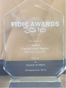 2016年9月26日,國(guó)際咨詢工程師聯(lián)合會(huì)(FIDIC,菲迪克)在摩洛哥古城馬拉喀什舉行2016年年會(huì),會(huì)上評(píng)選并表彰了來(lái)自中國(guó)、美國(guó)、俄羅斯等7個(gè)國(guó)家的21個(gè)工程項(xiàng)目,中鐵工程設(shè)計(jì)咨詢集團(tuán)有限公司勘察設(shè)計(jì)的山西中南部鐵路通道勇摘“菲迪克2016年工程項(xiàng)目?jī)?yōu)秀獎(jiǎng)”。