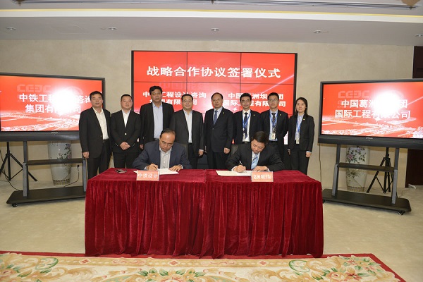 2017年10月16日,中鐵設(shè)計(jì)集團(tuán)公司與中國葛洲壩集團(tuán)國際工程有限公司在葛洲壩國際北京總部舉行戰(zhàn)略合作協(xié)議簽字儀式,中鐵設(shè)計(jì)董事長、黨委書記李壽兵和葛洲壩國際公司董事長、黨委書記陳曉華出席簽字儀式。中鐵設(shè)計(jì)副總經(jīng)理劉春彥與葛洲壩國際公司副總經(jīng)理姜德華共同簽署協(xié)議。葛洲壩國際有關(guān)部門負(fù)責(zé)人,中鐵設(shè)計(jì)集團(tuán)海外經(jīng)營處、辦公室有關(guān)人員參加了簽字儀式。