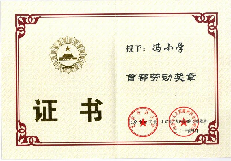 2021年獲北京市總工會、北京市人力資源和社會保障局授予的“首都勞動(dòng)獎(jiǎng)?wù)隆保?