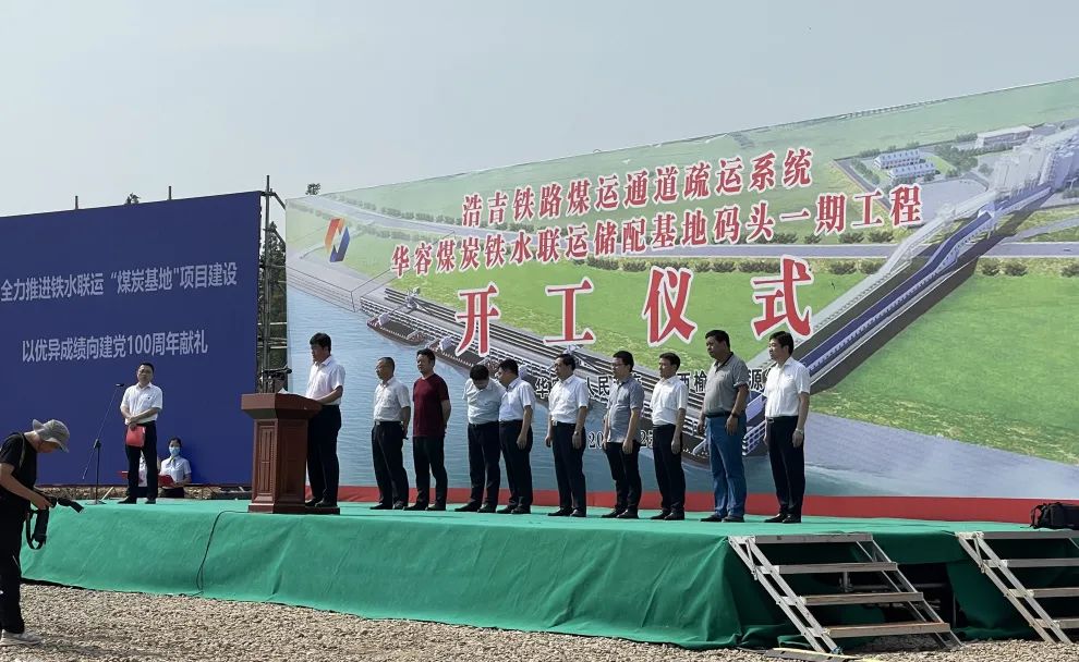 2021年6月25日9時18分,湖南省、岳陽市、陜西榆林能源集團共同在長江岳陽港洪山頭作業(yè)區(qū)舉行了華容煤炭鐵水聯(lián)運儲配基地碼頭一期工程的開工儀式,宣布浩吉鐵路華容煤炭鐵水聯(lián)運疏運項目全面開工,為建黨百年獻禮。自此,華容煤炭鐵水聯(lián)運鐵路專用線工程掀開了全面動工的新篇章。中鐵設(shè)計線站院院長岳春明出席,副院長裴春明及院華容鐵路專用線總承包項目部全體人員參加開工儀式。