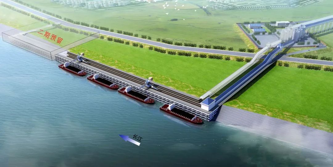 ▲華容煤炭鐵水聯(lián)運儲配基地碼頭一期工程效果圖
