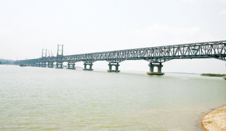 緬甸毛淡棉大橋-公鐵兩用大橋。該橋公路、鐵路在同一平面,主橋為7聯(lián)共21跨連續(xù)鋼桁梁,全長2345.6米,采用索塔懸臂拼裝法施工。