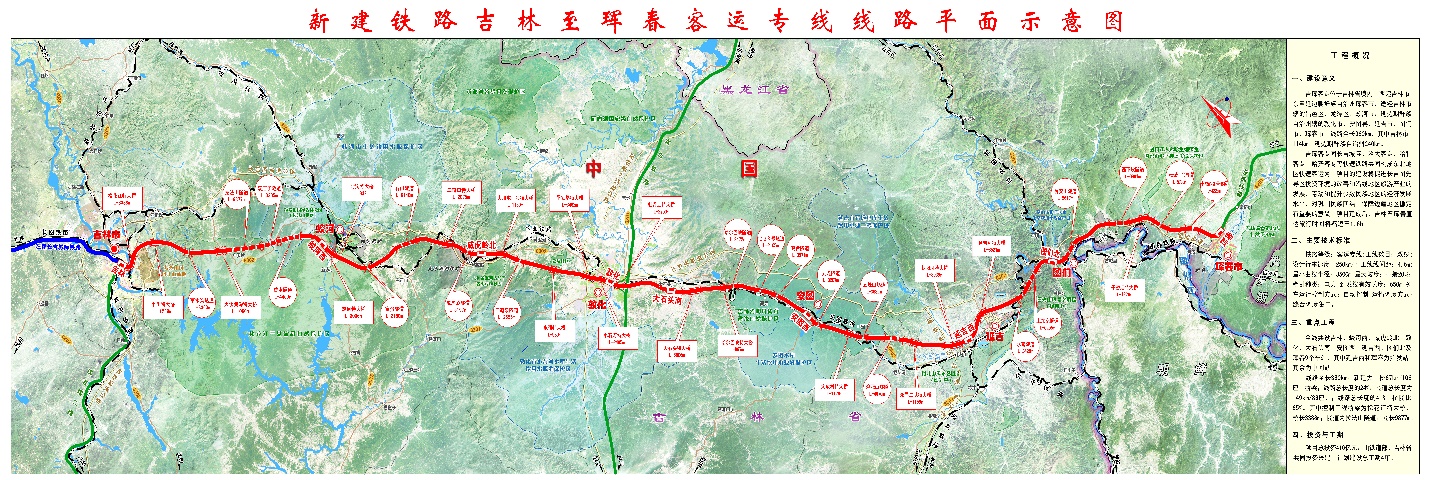 吉林至琿春高鐵位于吉林省境內(nèi),西起吉林市,途經(jīng)蛟河、敦化、安圖、延吉、圖們等縣市,東止延邊朝鮮族自治州琿春市,線路全長(zhǎng)360.986km,設(shè)計(jì)時(shí)速250km/h。吉林站為接軌站,新建蛟河西、威虎嶺北、敦化、大石頭南、安圖西、延吉西、圖們北、琿春共8座車站。