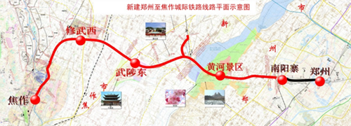 新建鄭州至焦作城際鐵路是中原城市群客運(yùn)系統(tǒng)的建設(shè)項(xiàng)目之一,正線全長約77.8km,其中利用既有京廣線9.65km,新建線路68.15km,設(shè)計(jì)時速200km/h。全線設(shè)鄭州、南陽寨、黃河景區(qū)、武陟、修武、焦作6個車站。