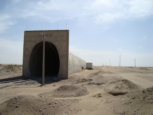 新建臨河至策克鐵路位于內(nèi)蒙古自治區(qū)境內(nèi)西北部,東接包蘭線巴彥淖爾市,西至中國(guó)與蒙古國(guó)邊境阿拉善盟額濟(jì)納旗策克口岸站,全線近600公里,中鐵咨詢集團(tuán)負(fù)責(zé)該線西段烏蘭敖包至策克416.8公里的設(shè)計(jì),其中,新建線路344.3公里,利用在建嘉峪關(guān)至策克鐵路改建70.5公里。該線為國(guó)鐵Ⅱ級(jí)、預(yù)留國(guó)鐵Ⅰ級(jí)條件,單線,列車時(shí)速120公里/小時(shí),內(nèi)燃牽引、預(yù)留電氣化條件,牽引質(zhì)量5000噸,到發(fā)線有效長(zhǎng)1050米。工程已竣工通車。