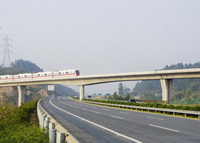 廣州軌道交通四號線列車采用直線電機列車,4節(jié)編組,最高運行速度達(dá)90km/h。線路坡度達(dá)55‰,高架區(qū)間全長22km,采用主跨30m,輔助跨度25m的整孔預(yù)制箱梁和節(jié)段預(yù)制箱梁。中鐵咨詢集團(tuán)承擔(dān)第二和第七標(biāo)段設(shè)計工作。